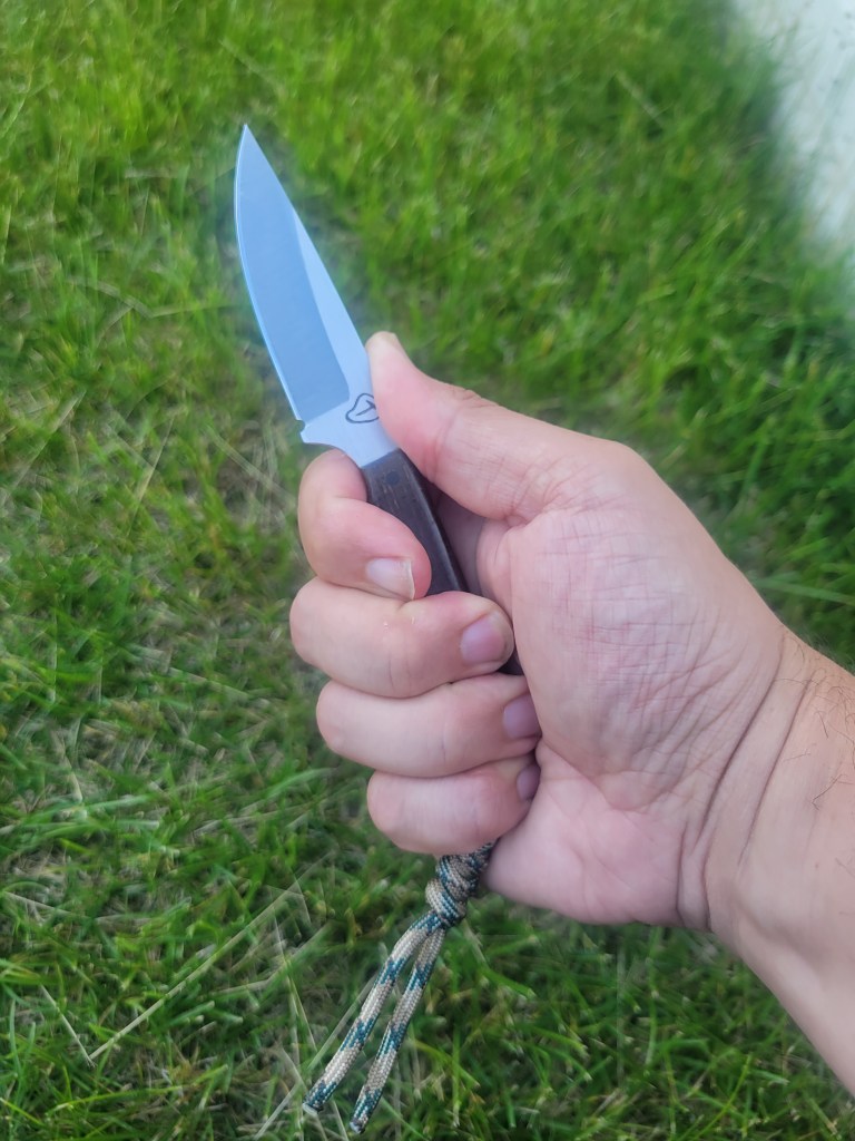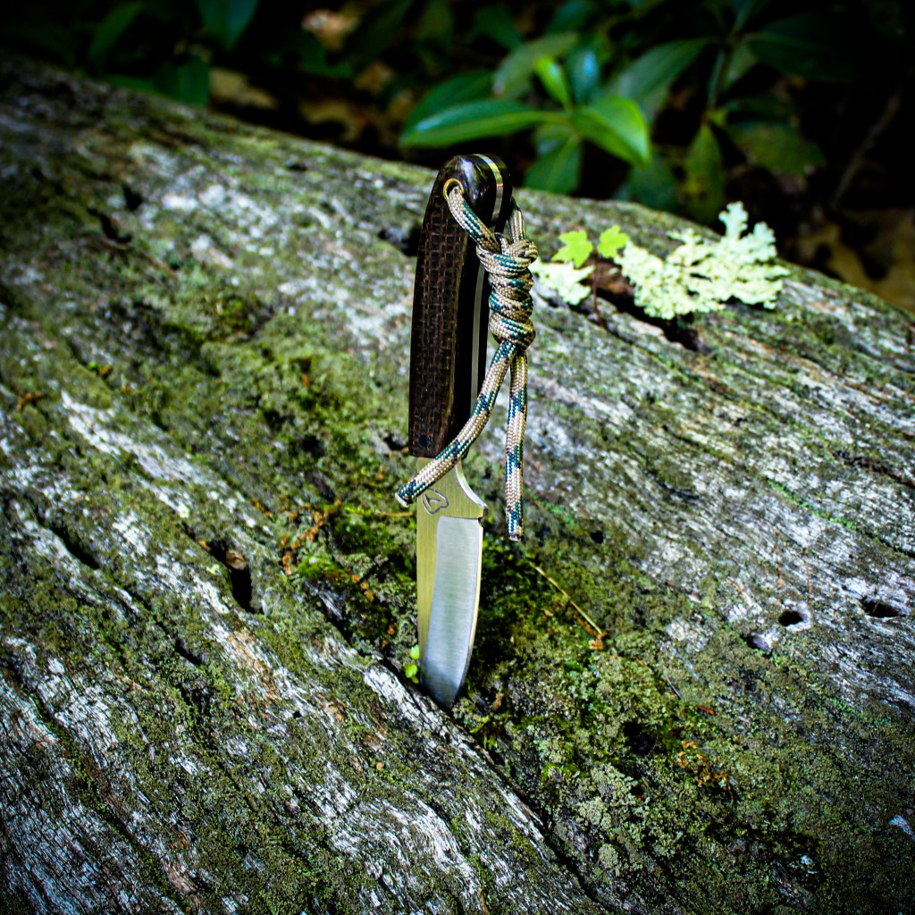 The version I have features burlap micarta scales, Nitro-V stainless steel, and a saber grind. I also had the opportunity to handle the hemp wrapped version in a scandi grind that belongs to Ross. This review will focus mainly on my model.