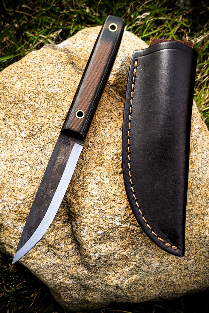 The spine of the blade is sharp, allowing for easy fero rod striking and performing scraping tasks. The knife weighs 3.92 ounces, keep in mind this can vary slightly based on handle materials. These typically come shipped with a handmade kydex sheath.