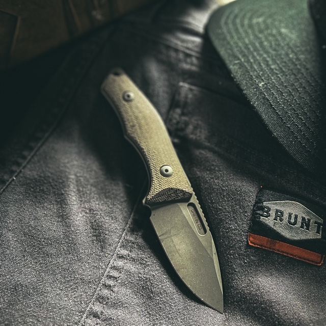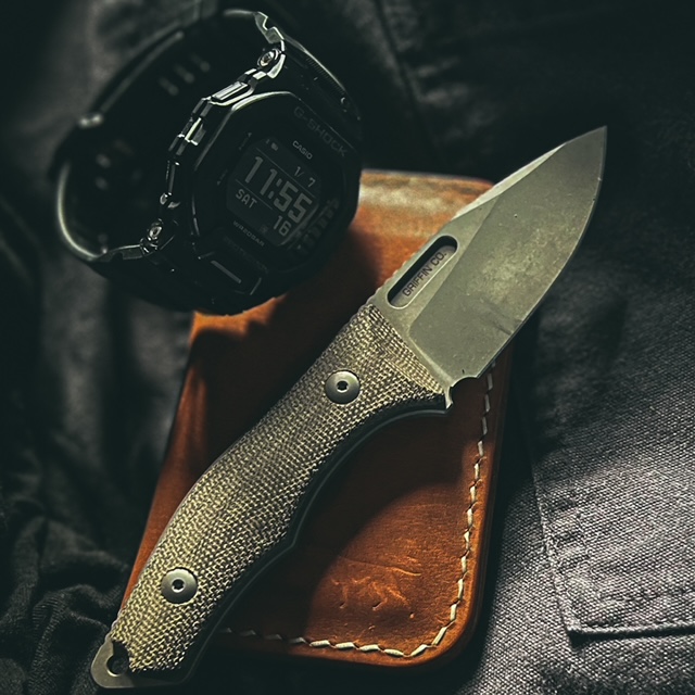 You can get it with a few different handle scales. I opted for the OD Green micarta, but there’s natural micarta, black micarta, or you can get titanium or brass with or without the Griffin Co logo on them to purchase alongside one of the micarta options.