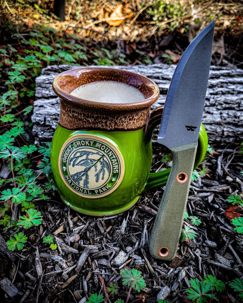 Let’s start with some basic specs. The overall length of the EDB is 7.5 inches with a 3.5-inch scandi grind blade. The blade width is 3/32 of an inch, making it thin but plenty tough to handle serious outdoor tasks. Like all of Nuge’s outdoor knives, the spine is 90 degrees for scraping and ferro rod striking. The blade steel is one of my personal favorites CPM-3V. This particular steel falls into the category of high carbon, with all the toughness you would expect from high-carbon steel but also boasts excellent edge retention, easy sharpening, and good corrosion resistance. The handles are green canvas micarta with beautiful flared copper tubes.