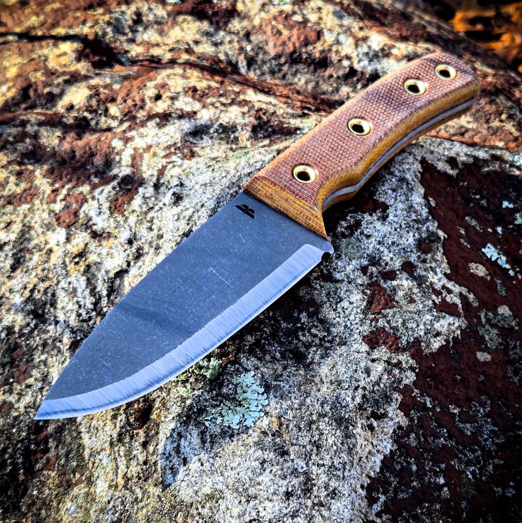 Tom is known for his purpose driven designs, while his knives do have aesthetic appeal his design choices always boil down to practicality and useability. At first glance it may seem that the Big Boi is just a stretched out version of the original and XL Wickets, however there are a lot of nuanced design choices that really serve a knife in this size range very well. While we are on the topic of size, let’s talk a bit about that. At 9 inches overall, the Big Boi is not a huge knife but definitely falls into a category that would be considered a full sized outdoor knife. It is a great size for a weekend of camping, someone who works in a wilderness environment, or for a bushcraft hobbyist who is expecting to do some serious work. The 4.5-inch blade is more than enough to handle your heavier wood processing tasks without being so large that you lose the ability to do finer tasks such as feather sticking and tinder shaving. The spine has a super crisp 90-degree edge, allowing you to strike your ferro rod and do all manners of scraping tasks.