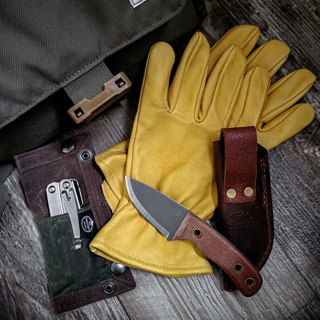 The unlined cowhide gloves are a great lightweight glove option that are both comfortable and durable. They are currently offered in the classic hide yellow color or in solid black. Each pair is made in the USA and is hand finished in the Badger Claw Shop to include a grommet for easy latching to your belt or pack and treated with a proprietary blend of water replennet oil and wax to ensure durability when working in the elements. I found the sizing to be accurate, and they are generously cut to provide wrist protection. While lightweight and relatively thin, they are a bit thicker than your standard big box leather garden glove, adding more durability but not interfering with your manual dexterity. I had no issues using larger knives, small knives, hatchets, or saws while wearing the cowhide gloves. Priced between $28 and $39 these are a great option for anyone looking for a solid American made work glove that won’t break the bank!
