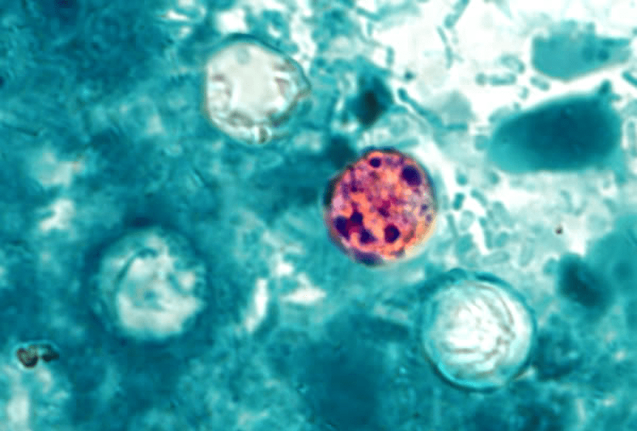 This parasite only affects humans and other primates, but can be carried by other animals. It spreads the same way cryptosporidium does, however, it causes a far more severe form of gastroenteritis and will remain dormant for a week before causing an illness that if left untreated can last up to 6 weeks.